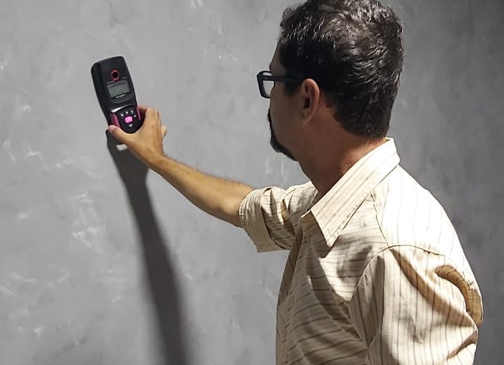Scanner eletrônico para detecção de estruturas e instalações embutidas em paredes (pilares, vigas, metais, madeira, tubulações e cabos elétricos).