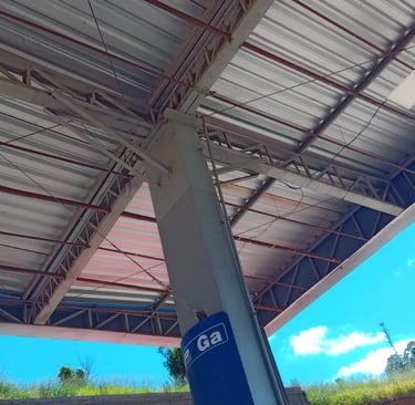 Vazamento em cobertura de posto de combustível